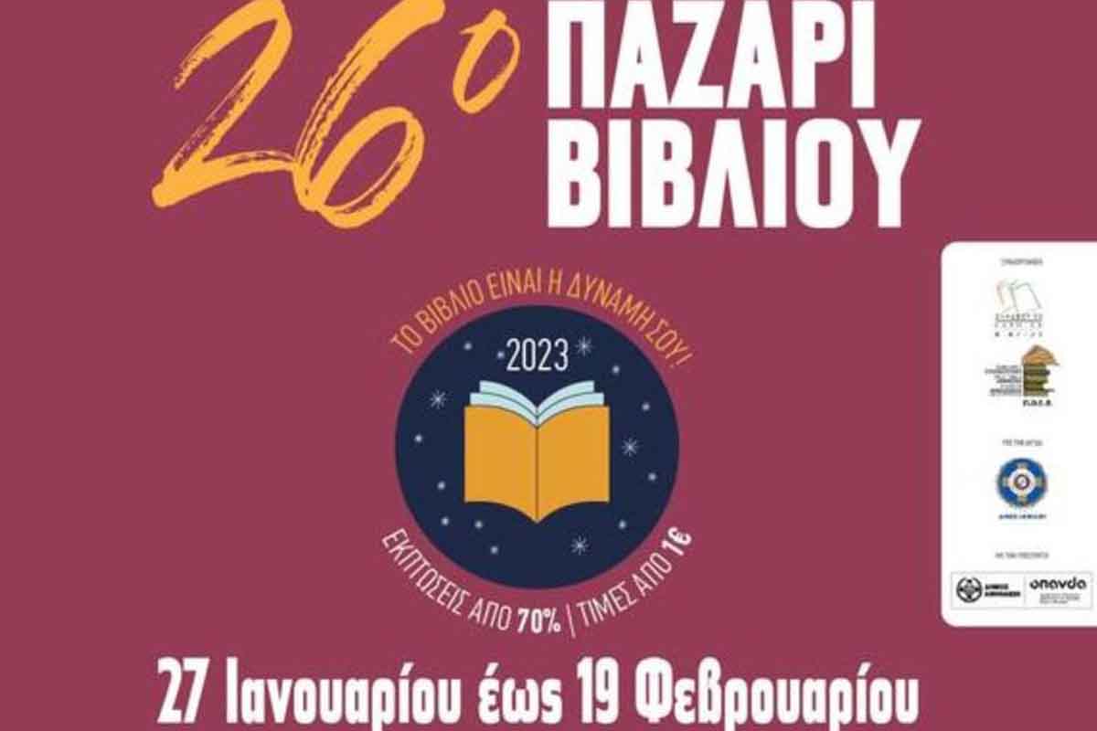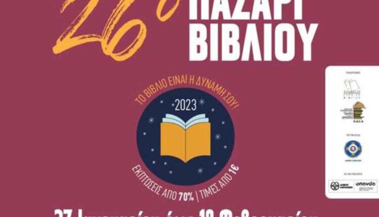 Από την Παρασκευή 27/1 έως και την Κυριακή 19/2 θα πραγματοποιηθεί στην Πλατεία Κλαυθμώνος το μεγαλύτερο και πλέον οργανωμένο Παζάρι Βιβλίου στην πόλη των Αθηνών, με κεντρικό σύνθημα: «Το βιβλίο είναι η δύναμή σου».Το 26ο Παζάρι Βιβλίου 2023 θα πραγματοποιηθεί και φέτος στην Πλατεία Κλαυθμώνος. Διοργανώνεται από τον Σύνδεσμο Εκδοτών Βιβλίου και την Πανελλήνια Ομοσπονδία Εκδοτών Βιβλιοχαρτοπωλών υπό την αιγίδα του Δήμου Αθηναίων και με την υποστήριξη του Οργανισμού Πολιτισμού, Αθλητισμού και Νεολαίας του Δήμου Αθηναίων.…