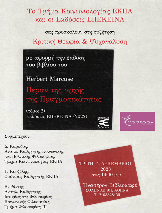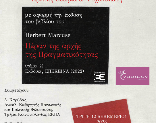με αφορμή την έκδοση του βιβλίου του Herbert Marcuse Πέραν της αρχής της Πραγματικότητας
