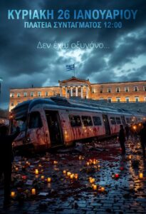 “ΔΕΝ ΕΧΩ ΟΞΥΓΟΝΟ” ΚΥΡΙΑΚΗ 26 ΙΑΝΟΥΑΡΙΟΥ 12.00 μ.μ — ΣΥΝΤΑΓΜΑ #Τέμπη_εγκλημα #Τέμπη_συγκαλυψη #Τέμπη_δικαιωση