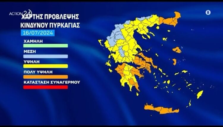 Αντιμέτωπες με πολύ υψηλό κίνδυνο φωτιάς βρίσκονται σήμερα, Τρίτη (16/7) 16 περιοχές της χώρας, σύμφωνα με το χάρτη πρόβλεψης κινδύνου πυρκαγιάς που εκδίδει η Γενική Γραμματεία Πολιτικής Προστασίας…