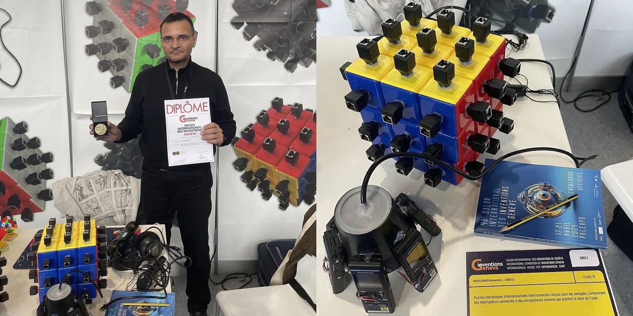 Ενή­λι­κας μαθη­τής του 4ου Εσπε­ρι­νού ΕΠΑΛ Ηρα­κλεί­ου συμ­με­τεί­χε στο Συνέ­δριο Εφευ­ρε­τών της Σίλι­κον Βάλεϊ, στη Σάντα Κλά­ρα της Καλι­φόρ­νια, και έλα­βε τρία βρα­βεία (ένα χρυ­σό και δύο αση­μέ­νια) για τρεις ευρε­σι­τε­χνί­ες. Ο Αλέ­ξαν­δρος Αγγε­λι­δά­κης, μαθη­τής του Τομέα Ηλε­κτρο­λο­γί­ας, Ηλε­κτρο­νι­κής και Αυτο­μα­τι­σμού του 4ου Εσπε­ρι­νού ΕΠΑΛ, δια­κρί­θη­κε για την ειδι­κή προ­σαρ­μο­γή του κύβου του Ρού­μπικ για ανθρώ­πους με τύφλω­ση, για άτο­μα που πάσχουν από αχρω­μα­το­ψία καθώς και για άτο­μα με Αλτσχάιμερ …
