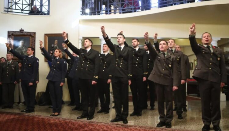 Τα χακί για την ορκωμοσία εφέδρων αξιωματικών φόρεσαν ο ολυμπιονίκης στους κρίκους Λευτέρης Πετρούνιας, ο Μίλτος Τεντόγλου του άλματος εις μήκος, η Σοφία Παπαδοπούλου της ιστιοπλοΐας και άλλοι ολυμπιονίκες…