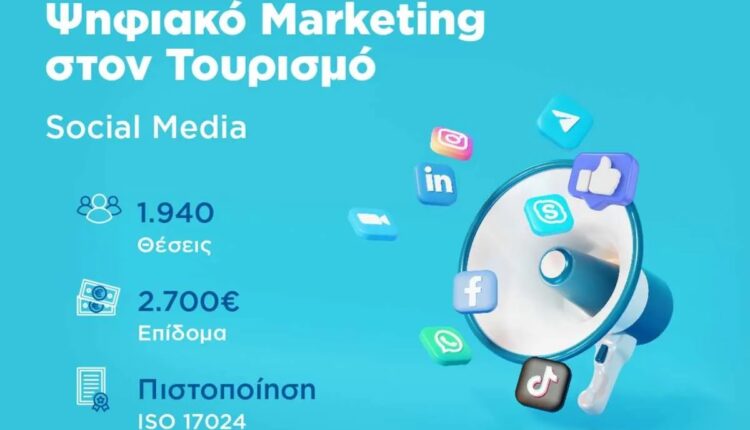 Το ΙΝΣΕΤΕ, δίνει την ευκαιρία σε 1.940 νέους ανέργους, εγγεγραμμένους στη ΔΥΠΑ, ηλικίας έως 29 ετών, πτυχιούχους σχολών θεωρητικής κατεύθυνσης τριτοβάθμιας ή μεταδευτεροβάθμιας εκπαίδευσης να αποκτήσουν δεξιότητες στο ψηφιακό μάρκετινγκ στον τουρισμό…
