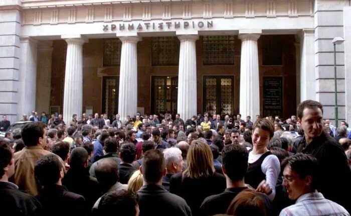 Αρχίζει η πτώση της τιμής των μετοχών στο Χρηματιστήριο Αθηνών, που θα οδηγήσει στο αποκληθέν «Σκάνδαλο του Χρηματιστηρίου». Πολλές από τις μετοχές που έχουν εισαχθεί στο Χρηματιστήριο θα αποδειχτούν «φούσκες», δηλαδή άνευ αντικρίσματος, με εταιρίες χωρίς έργο, αλλά μόνο σκοπό την ελκυστική εικόνα στο χρηματιστήριο…