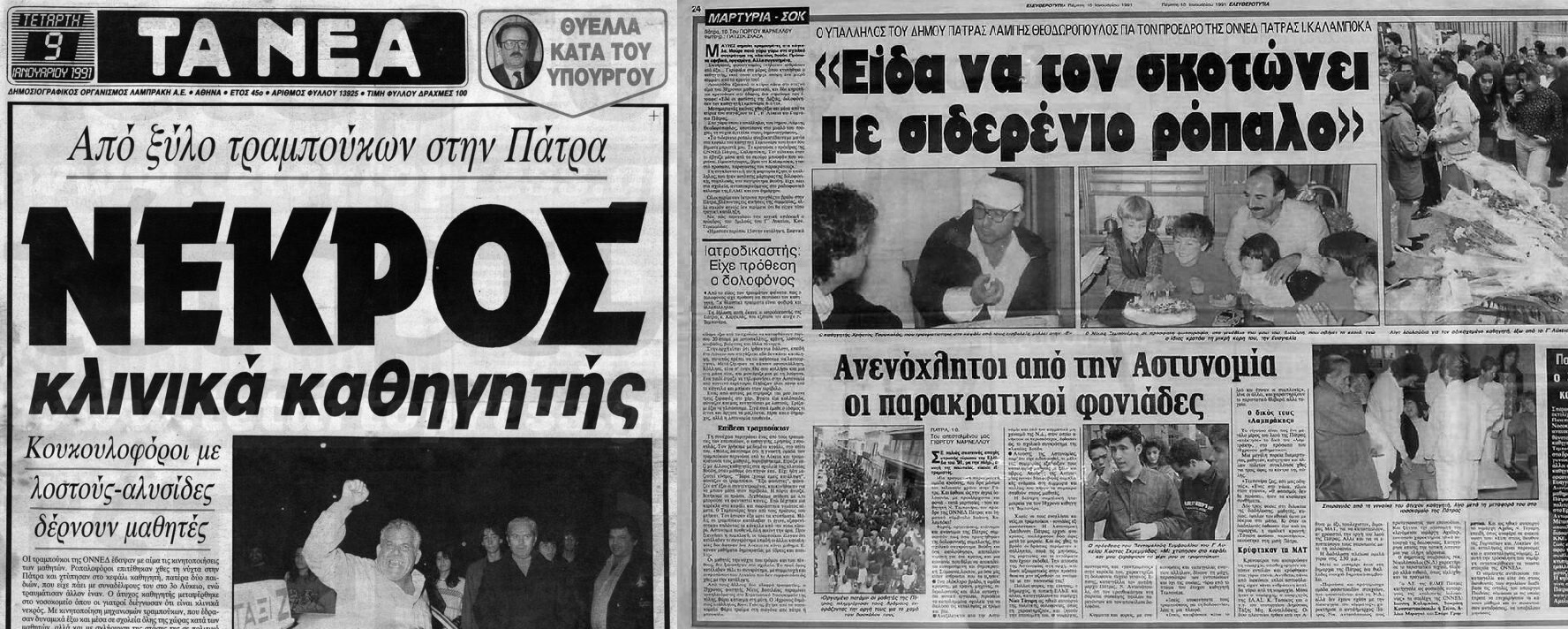 8 Ιανουαρίου 1991: Δολοφονείται ο καθηγητής Νίκος Τεμπονέρας Ιστορία By hellas2day On Ιαν 8, 2025 Σαν σήμερα το 1991 δολοφονείται ο καθηγητής μαθηματικών Νίκος Τεμπονέρας, υπερασπιζόμενος τους μαθητές του κατά τη διάρκεια μαθητικών κινητοποιήσεων στην Πάτρα… περισσότερες πληροφορίες εδώ - Διαφήμιση -- Διαφήμιση -300Χ300″ />- Διαφήμιση - 8 ΙΑΝΟΥΑΡΙΟΥ 1991ΔΟΛΟΦΟΝΙΑΝΙΚΟΣ ΤΕΜΠΟΝΕΡΑΣΣΑΝ ΣΗΜΕΡΑ Share