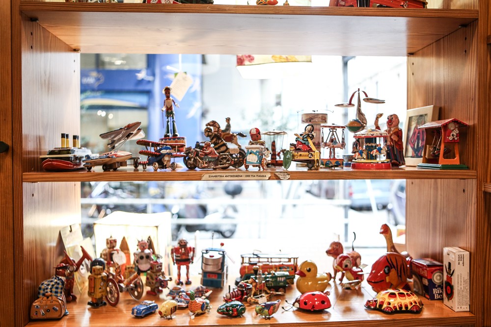Ο πατέρας του ξεκίνησε ως μπακαλόγατος και γυρολόγος και κατέληξε να ανοίξει τη δική του επιχείρηση και να κάνει εισαγωγές. Χαζεύοντας τα διάφορα αντικείμενα, είναι αδύνατο να μην πέσει το μάτι σου στα ντουλάπια με τα συλλεκτικά παιχνίδια που ζωντανεύουν μια παραμυθένια ατμόσφαιρα άλλης εποχής…