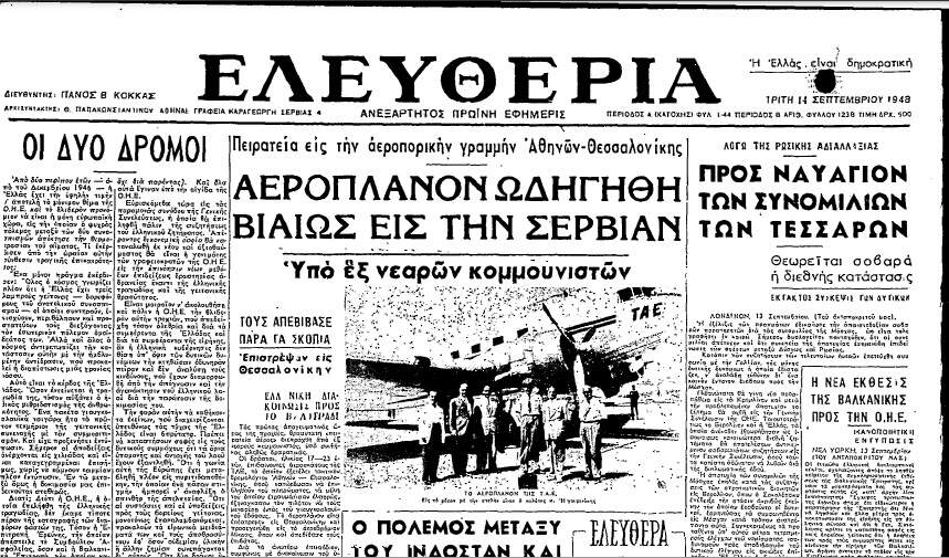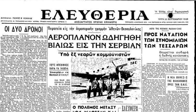 Η πρώτη αεροπειρατεία στην Ελλάδα και μία από τις πρώτες παγκοσμίως, έγινε από 6 νεαρούς κομουνιστές στις 12 Σεπτεμβρίου 1948, κατά τη διάρκεια του Εμφυλίου Πολέμου…