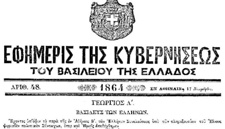 Σαν σήμερα 13 Νοεμβρίου 1864-Καταργείται η Συνταγματική Μοναρχία-Καθιερώνεται η Βασιλευόμενη Δημοκρατία