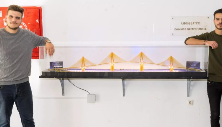 Η γέφυρα Ρίου – Αντιρρίου «Χαρίλαος Τρικούπης» σε όλο της το μεγαλείο. Σε όλο της το μεγαλείο, αλλά σε …σμίκρυνση και φτιαγμένη όχι από τα συνήθη δομικά υλικά, αλλά κυρίως από …σπαγγέτι!