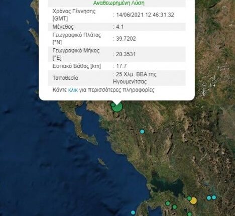 Σεισμική δόνηση 4,1 Ρίχτερ ταρακούνησε την Ηγουμενίτσα το μεσημέρι της Δευτέρας (14/06).