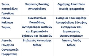 ΠΑ.Σ.Ε. Κ.ΑΛ.Ο. Πανελλήνια Συνομοσπονδία Ενώσεων Φορέων Κοινωνικής Αλληλέγγυας Οικονομίας Επικαιρότητα By hellas2day On Ιούν 21, 2025 Ανασύνθεση του Διοικητικού Συμβουλίου της ΠΑΣΕ ΚΑΛΟ Στις 15/5 έγινε ανασύνθεση του Διοικητικού Συμβουλίου της ΠΑΣΕ ΚΑΛΟ. Η νέα σύνθεση του ΔΣ είναι η εξής: -Σύρος Κοσκοβόλης Πρόεδρος -Χαρίλαος Βανίδης Αντιπρόεδρος -Δημήτρης Αποστόλου Γενικός Γραμματέας -Ωλένα Καλίνινα Ταμίας -Κωνσταντίνος Παπαδάκης Αντιπρόεδρος Διεθνών , Ευρωπαϊκών Σχέσεων και Πολιτικών -Σωτήριος Τσουκαρέλης. Αντιπρόεδρος Σύναψης Συνεργειών και Δημιουργίας Οικοσυστημάτων -Λουκάς Γεωργίου Οργανωτικός Γραμματέας -Στυλιανός Κατωμέρης Μέλος -Γιάννης Λαγός Μέλος - Διαφήμιση -- Διαφήμιση -- Διαφήμιση - Share