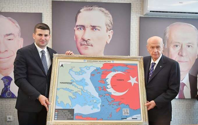 Αντέδρασε η Ελλάδα απέναντι στη νέα πρόκληση από την Τουρκία, προερχόμενη από τον ακροδεξιό κυβερνητικό εταίρο του Ερντογάν, τον Ντεβλέτ Μπαχτσελί, ο οποίος παρέλαβε από τους Γκρίζους Λύκους πίνακα με χάρτη του Αιγαίου, που δείχνει τα ελληνικά νησιά να περιλαμβάνονται στην τουρκική επικράτεια.