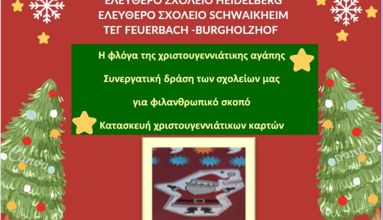 Μια χριστουγεννιάτικη συνεργατική δράση πραγματοποιείται αυτές τις μέρες στη Γερμανία, με έντονη κοινωνική διάσταση και φιλανθρωπικό σκοπό. Στο πλαίσιο μιας προσπάθειας για τη δημιουργία ενός δικτύου συνεργασίας σχολείων στο χώρο της Ελληνόγλωσσης Εκπαίδευσης στο εξωτερικό, τέσσερα σχολεία της Ομογένειας στη Γερμανία ενώνουν τις δυνάμεις τους, και πραγματοποιούν τη δράση “Η φλόγα της χριστουγεννιάτικης αγάπης” για έναν ιδιαίτερο σκοπό ενόψει των γιορτών…