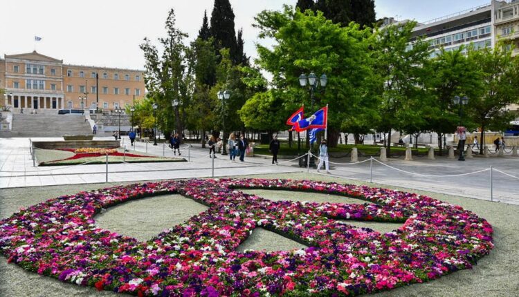 Μήνυμα «ειρήνης» για τον πόλεμο στην Ουκρανία, στέλνει το Σύνταγμα, το οποίο στολίστηκε, με αφορμή τον εορτασμό της Πρωτομαγιάς, με 13.600 λουλούδια.