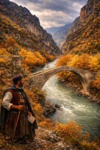 Με λένε Στέργιο. Ήμουν δεκαεφτά χρονών τότε, κι αυτή είναι η ιστορία μου. Γεννήθηκα σε τόπο σκληρό, όπου οι άνθρωποι μαθαίνουν από νωρίς να αντέχουν. Από παιδί δούλευα τη γη, μα κάθε φορά που έβλεπα πέτρα δουλεμένη από ανθρώπινο χέρι, κάτι μέσα μου ξυπνούσε. Η καμάρα πάνω από το νερό δεν ήταν για μένα μόνο πέρασμα· ήταν απόδειξη πως ο άνθρωπος μπορεί να σταθεί απέναντι στη φύση χωρίς να τη χαλάσει.