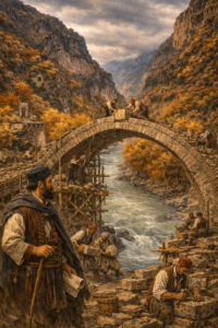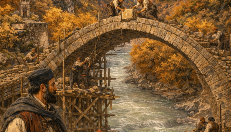 Εκείνες τις μέρες όλη η πολιτεία μιλούσε για το ίδιο πράγμα. Στους καφενέδες, στην αγορά, στις αυλές, ακόμη και στα ψιθυριστά λόγια μετά την εκκλησία: θα χτιζόταν γεφύρι μεγάλο, μονότοξο, εκεί που ο Αώος στενεύει πριν μπει στα βουνά. Όχι πρόχειρο πέρασμα, όχι ξύλα που τα παίρνει το νερό, αλλά γεφύρι πέτρινο, να βαστά ανθρώπους, ζώα και καραβάνια. Γεφύρι για γενιές.