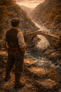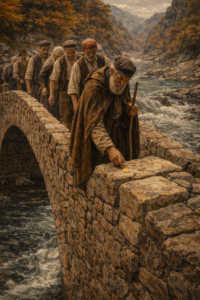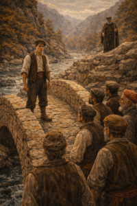 Το γεφύρι τελείωσε αθόρυβα, όπως τελειώνουν τα σωστά πράγματα. Μικρό, χαμηλό, μα στέρεο. Δεν είχε μεγαλείο, είχε όμως ισορροπία. Οι χωριανοί μαζεύτηκαν από νωρίς. Πέρασαν πρώτοι διστακτικά, άλλοι με φόβο, άλλοι με περιέργεια, πατώντας την πέτρα σαν να δοκίμαζαν αν αντέχει.