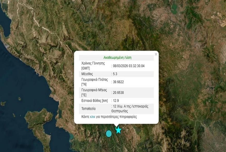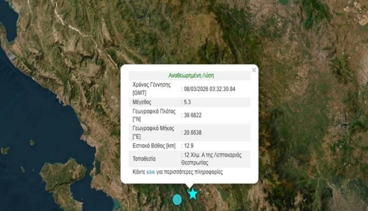 Σεισμός 5,3 βαθμών της κλίμακας Ρίχτερ σημειώθηκε κοντά στη Λεπτοκαριά Θεσπρωτίας, τα ξημερώματα της Κυριακής. Η δόνηση είχε εστιακό βάθος 9,7 χλμ και επίκεντρο 11χλμ ανατολικά της Λεπτοκαριάς…