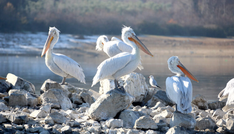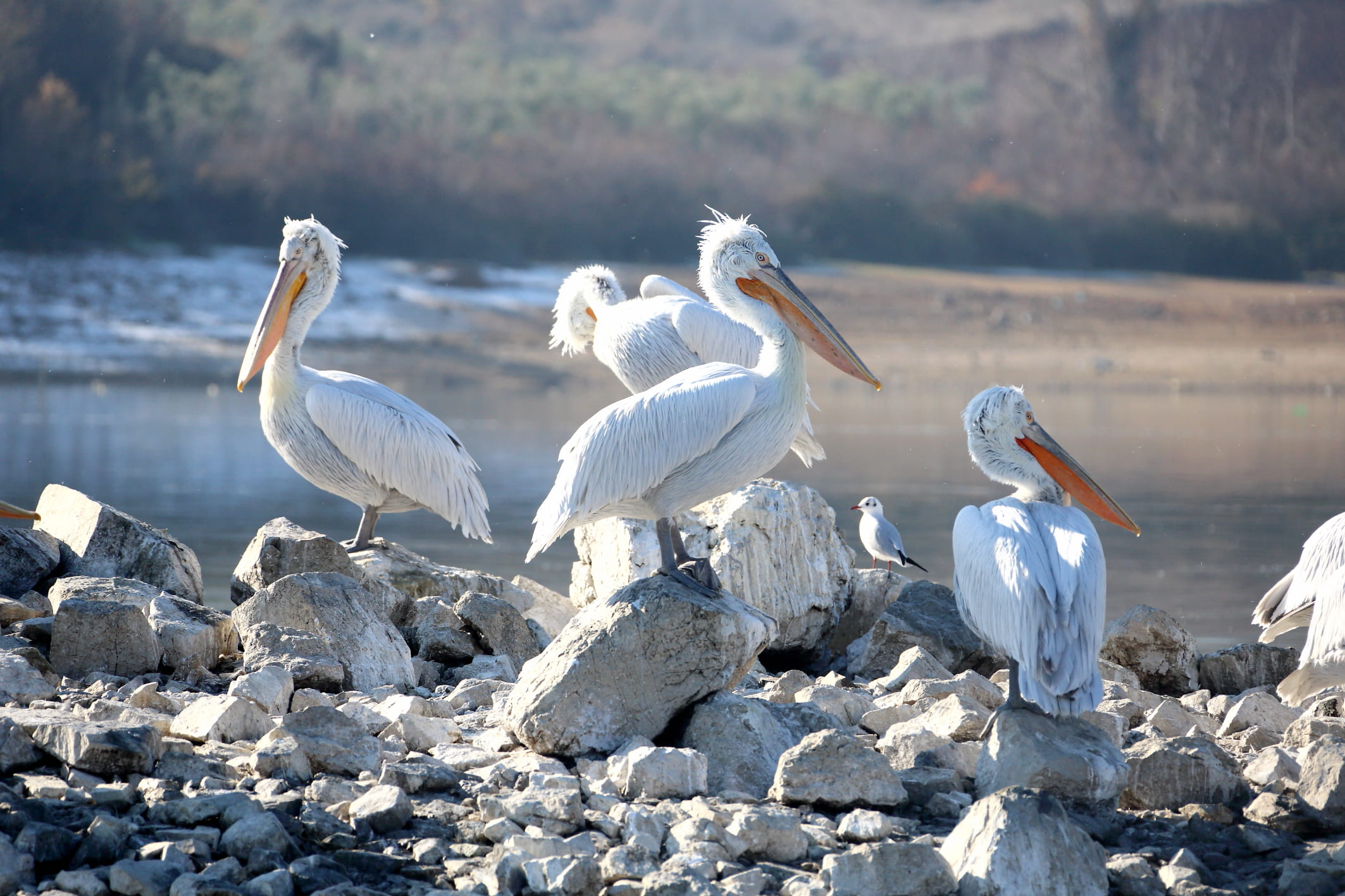 Οι τεράστιοι Αργυροπελεκάνοι δεν είχαν καλή διάθεση και έδειχναν στον φακό τον θυμό τους, καθώς δεν μπορούσαν να σπάσουν τον πάγο για να βρουν την τροφή τους.
