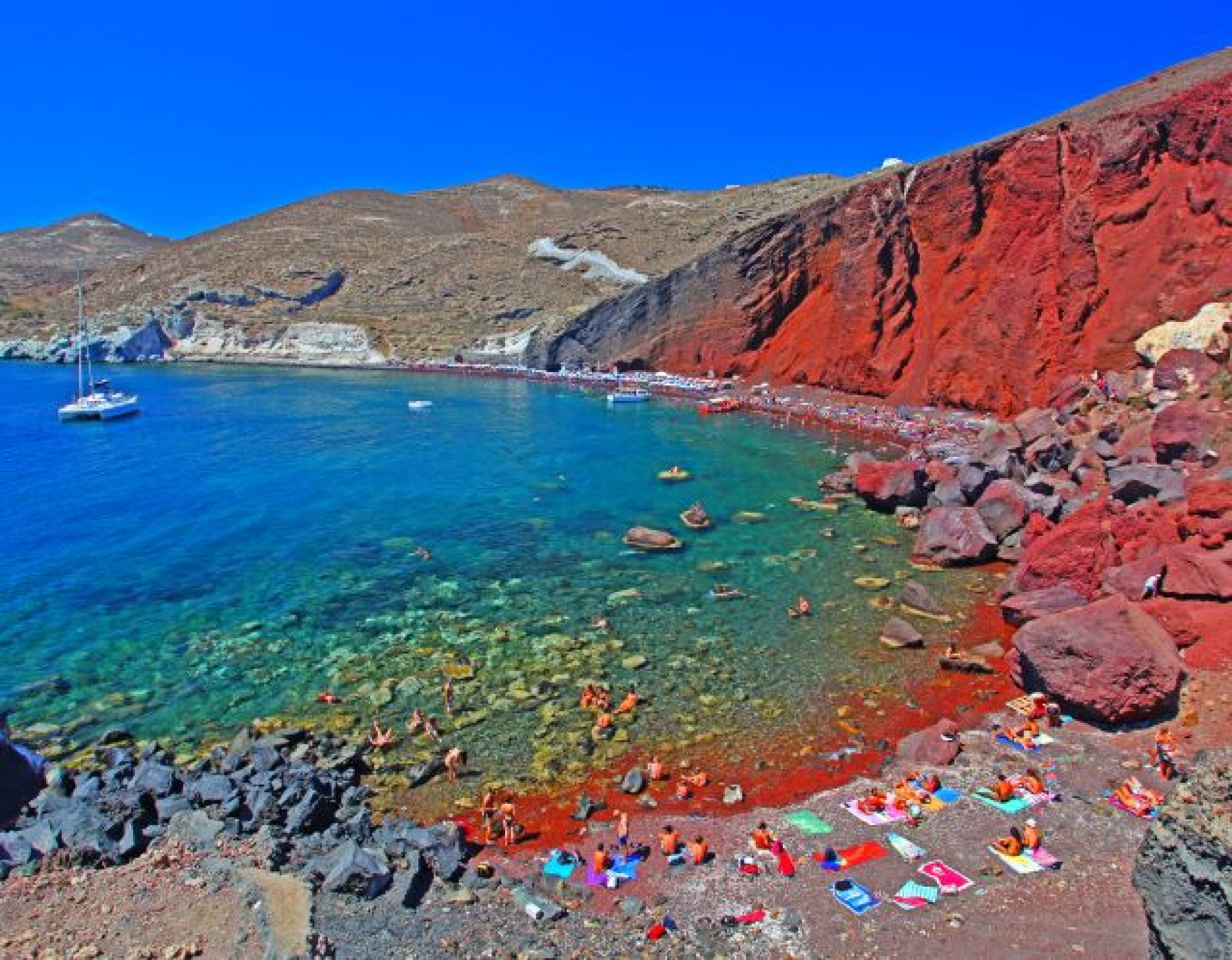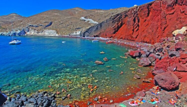 Η Κόκκινη Παραλία στη Σαντορίνη δεν είναι σίγουρα μια όμορφη παραλία με την κλασική έννοια του όρου. Δε θα δεις εξωτικά, διάφανα νερά και αφράτη λευκή άμμο που αποτελούν το καλύτερο φόντο για ονειρεμένες φωτογραφίες. Δεν γίνεται, όμως, να μη σε καθηλώσει η εικόνα που θα αντικρίσεις με το που θα πατήσεις το πόδι σου εκεί. Κόκκινα βράχια και κόκκινη άμμος που έρχεται σε αντίθεση με το συγκλονιστικό μπλε της θάλασσας και σε μαγεύει. Το χρώμα, βέβαια, οφείλεται στους μονόλιθους λάβας από το ηφαίστειο.…