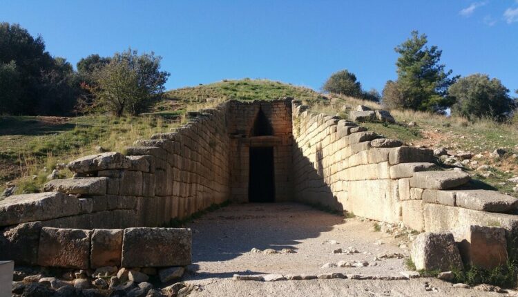 Ο Θησαυρός του Ατρέα, Τάφος του Ατρέως ή Τάφος του Αγαμέμνονα είναι ένας μεγάλος θολωτός τάφος στον λόφο της Παναγίτσας στις Μυκήνες, που κατασκευάστηκε κατά την εποχή του Χαλκού περίπου το 1250 π.Χ. Το πέτρινο υπέρθυρο πάνω από την πόρτα ζυγίζει 120 τόνους, με διαστάσεις κατά προσέγγιση 8,3 x 5,2 x 1,2 μέτρα, το μεγαλύτερο στον κόσμο. Ο τάφος χρησιμοποιήθηκε για άγνωστη περίοδο. Αναφέρθηκε από τον Ρωμαίο γεωγράφο Παυσανία τον 2ο αιώνα μ.Χ., ήταν ακόμη ορατό το 1879 όταν ο Γερμανός αρχαιολόγος Ερρίκος Σλήμαν ανακάλυψε τους τάφους κάτω από την «αγορά» στην Ακρόπολη των Μυκηνών…