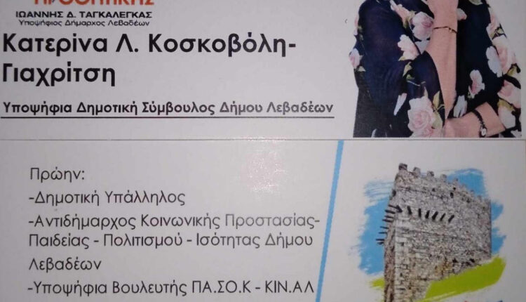 - Αντιδήμαρχος Κοινωνικής Προστασίας- Παιδείας — Πολιτισμού — Ισότητας Δήμου Λεβαδέων