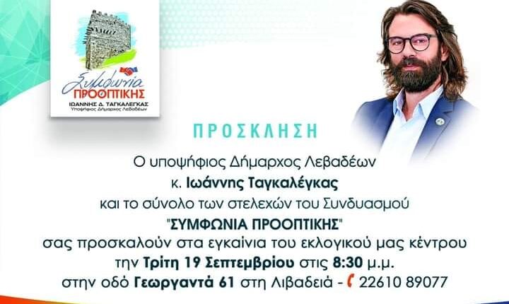 ΛΙΒΑΔΕΙΑ: 19 ΣΕΠΤΕΜΒΡΙΟΥ ΕΓΚΑΙΝΙΑ ΕΚΛΟΓΙΚΟΥ ΚΕΝΤΡΟΥ ΙΩΑΝΝΗ ΤΑΓΚΑΛΕΓΚΑ AgendaΛεβαδειάΠ.Ε. Βοιωτίας By hellas2day Last updated Σεπ 17, 2023 Εγκαίνια εκλογικού κέντρου. Παρουσίαση συνδυασμού - Διαφήμιση -- Διαφήμιση -- Διαφήμιση -- Διαφήμιση - Share