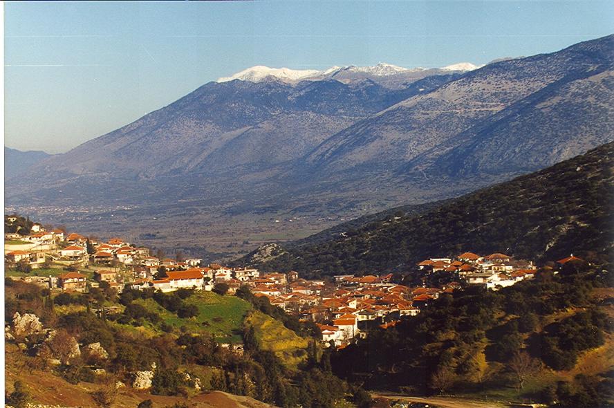 προς τη θάλασσα (Κουτσουρός, Αϊ – Δημήτρης, Προφ. Ηλίας, Μεσοβούνι) σε υψόμετρο 640 μ. και έχει θέα προς τη λίμνη του Μόρνου.