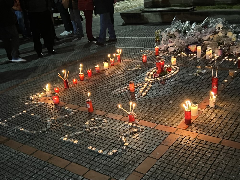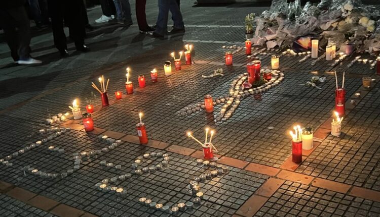 Όλοι κρατούσαν από ένα λευκό λουλούδι στο χέρι, ενώ σχημάτισαν με κεριά την ημερομηνία της τραγωδίας: 1–3‑2023.…