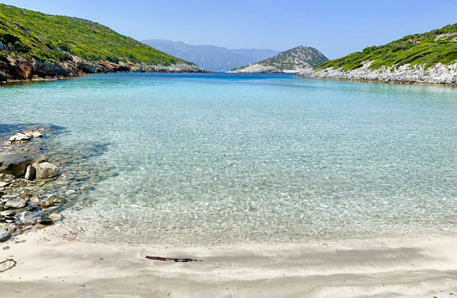 Έχει άμμο με γαλαζοπράσινα ρηχά νερά που όπως είναι φυσικό ευνοούν τα παιχνίδια και επομένως την καθιστούν ασφαλή προορισμό για οικογένειες με παιδιά. Παρόλο το μικρό μέγεθος διαθέτει πολύ καλή οργάνωση και θα βρείτε ομπρέλες και ξαπλώστρες, τις οποίες μάλιστα μπορείτε να μεταφέρετε και μέσα στην θάλασσα και να ξαπλώσετε εκεί.…