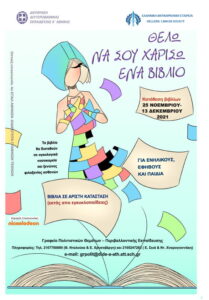 Παρακαλούνται οι σχολικές μονάδες που επιθυμούν να συνεισφέρουν στη δράση αυτή, να καταθέσουν τα βιβλία από τις 25 Νοεμβρίου έως και τις 13 Δεκεμβρίου 2021, στη Διεύθυνση Δευτεροβάθμιας Εκπαίδευσης Α’ Αθήνας στο Γραφείο Πολιτιστικών Θεμάτων – Περιβαλλοντικής Εκπαίδευσης, Χίου 16–18, Τ.Κ.10438 Αθήνα (Μετρό Μεταξουργείου), στον 4° όροφο.…
