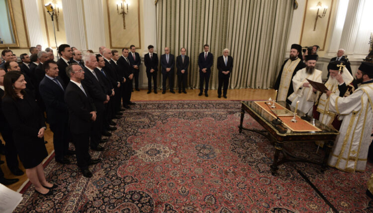Οι 63 νέοι υπουργοί της κυβέρνησης ορκίζονται στο Προεδρικό Μέγαρο παρουσία της Προέδρου της Δημοκρατίας, Κατερίνας Σακελλαροπούλου και του πρωθυπουργού Κυριάκου Μητσοτάκη. Πηγές του Μεγάρου Μαξίμου υποστηρίζουν ότι δεν πρόκειται για κυβέρνηση «ισορροπιών», αλλά για κυβέρνηση «σκληρής δουλειάς». Ο μέσος όρος ηλικίας των υπουργών είναι 53 έτη, ενώ 15 είναι γυναίκες…