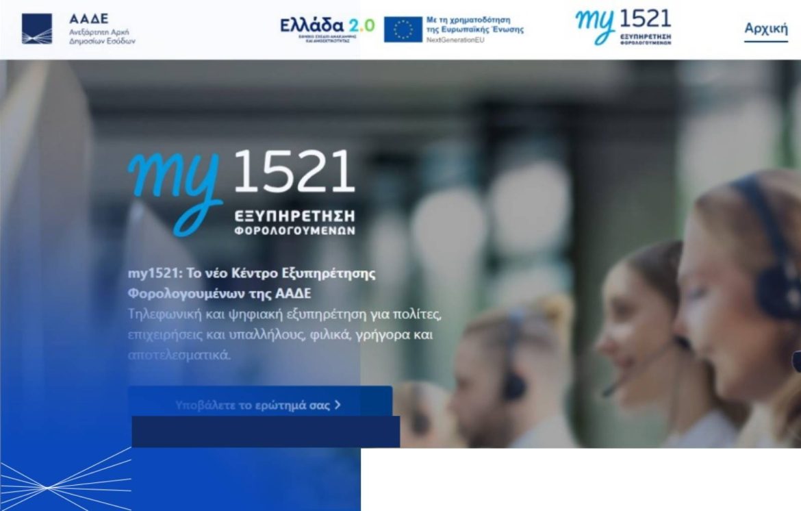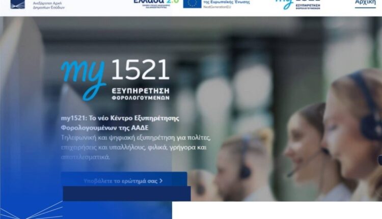Η ΑΑΔΕ παρουσίασε το νέο Ολοκληρωμένο Κέντρο Εξυπηρέτησης Φορολογουμένων my1521, που συνενώνει την τηλεφωνική γραμμή 1521 και την ψηφιακή πλατφόρμα σε ένα ενιαίο σύστημα εξυπηρέτησης πολιτών και επιχειρήσεων…
