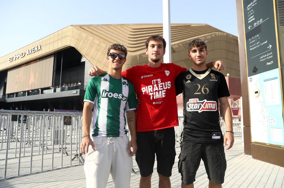 Σπά­νιες και συγκι­νη­τι­κές εικό­νες εκτυ­λί­χθη­κε έξω από την εντυ­πω­σια­κή Etihad Arena στο Άμπου Ντά­μπι, με φιλά­θλους του Ολυ­μπια­κού και του Πανα­θη­ναϊ­κού να ποζά­ρουν χαμο­γε­λα­στοί και αγκα­λια­σμέ­νοι. Παρά τη μακρο­χρό­νια αντι­πα­λό­τη­τα των δύο ιστο­ρι­κών ομά­δων, το πάθος για τον ελλη­νι­κό αθλη­τι­σμό ένω­σε τους φίλους των δύο συλ­λό­γων σε μια στιγ­μή αλλη­λεγ­γύ­ης και σεβα­σμού, στέλ­νο­ντας ένα δυνα­τό μήνυ­μα ενό­τη­τας και πολιτισμού…